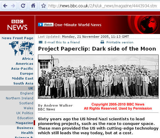 Operatie Paperclip was een geheime operatie vanuit de Verenigde Staten, om de technologie en de geleerden van de Nazi’s naar de VS te halen. Er was vooral interesse in de ruimtevaarttechnologie. Prominente Nazi’s die hun dood geveinsd hadden, gingen heimelijk werken voor Amerikaanse overheidsorganisaties zoals de CIA (1947) en kregen dan een nieuwe identiteit.