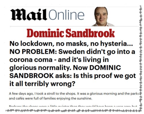 Andere experts wijzen erop, dat het nog veel te vroeg zou zijn om conclusies te trekken. In meerdere landen waar het virus bedwongen leek, is het weer bezig aan een opmars. In Denemarken waarschuwde het hoofd van de volksgezondheidsbescherming onlangs, dat er helemaal geen sprake is van een tweede golf omdat de eerste nog steeds aan de gang is… De inhoudelijke motivatie voor deze beweringen zijn flinterdun. Het is hun ‘gevoel’ tegenover de KEIHARDE FEITEN van de Zweedse situatie..!