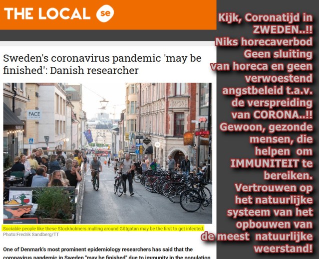 “Het is heel goed mogelijk, dat de pandemie van het coronavirus in Zweden voorbij is. Er zijn aanwijzingen dat de Zweden een zekere immuniteit voor het virus hebben opgebouwd die, samen met al het andere dat ze doen om verspreiding tegen te gaan, voldoende is om de ziekte onder controle te houden.”..!!